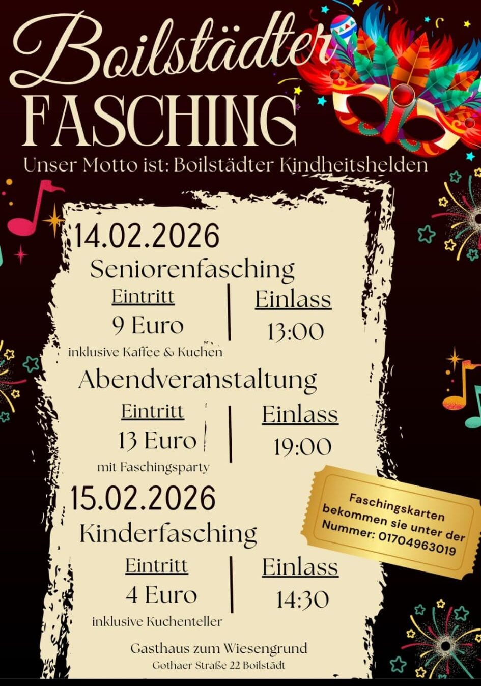 Wiesengrund Gothaer Straße 19, GothaEinlass 13.00 Uhr; Eintritt 9,- € inkl. Kaffee und Kuchen